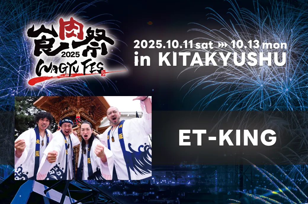 福岡県北九州市で開催される「食肉祭 × WAGYU FES 2025」、期待の初参加アーティストに『ET-KING』の名前が挙がりました!