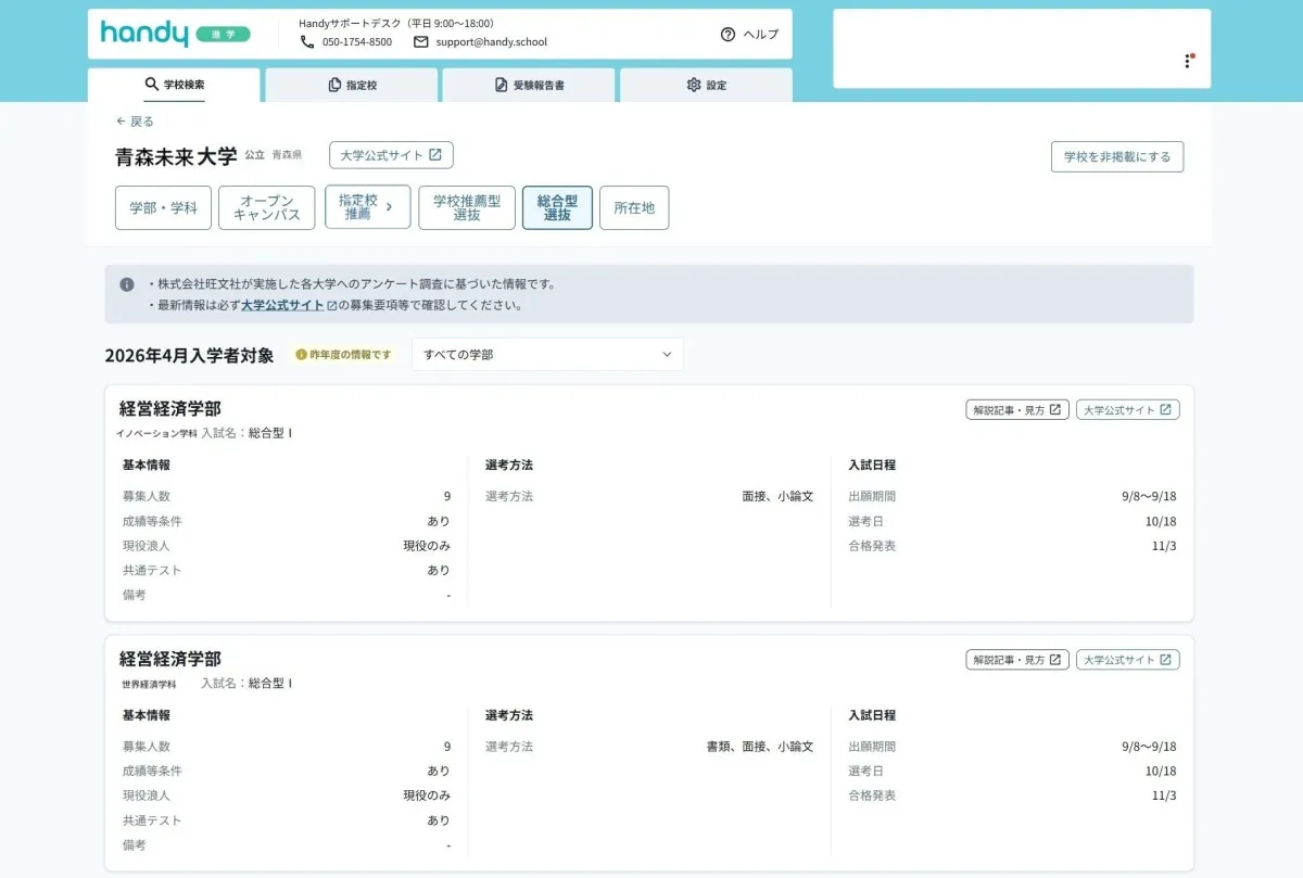 『Handy進路指導室』では、今後も機能拡充が予定されています。今夏を目指して、一般選抜に関する入試情報も追加される予定です。これにより、指定校推薦や年内入試情報だけでなく、一般選抜に関する情報も網羅的に探すことができ、学生たちの多様な進路選択をサポートする環境が整えられます。