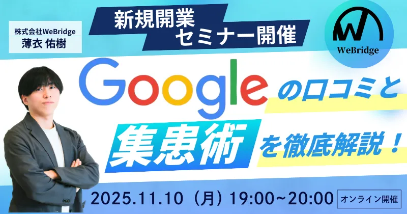 2025年11月10日午後7時から8時にかけて、オンラインで特別な新規開業セミナーが開催されます。このセミナーは、開業医やこれから開業を考えている医師の皆さまを対象に、Googleを活用した集患方法と、口コミに対する効果的な対応策を徹底的に解説します。参加費は無料で、定員は300名ですが、誰でも参加できる貴重な機会です。