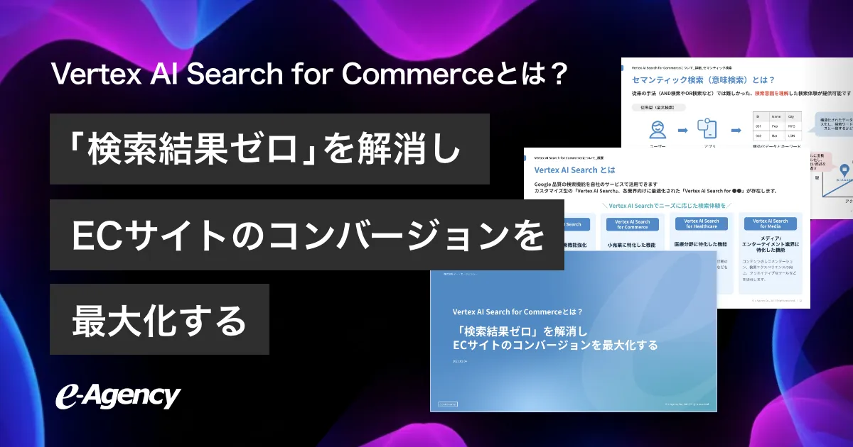 2026年2月12日、イー・エージェンシーは最新の解説資料「Vertex AI Search for Commerceとは?『検索結果ゼロ』を解消し、ECサイトのコンバージョンを最大化する」を公開しました。この資料は、ECサイトにおける検索結果の最適化とレコメンド機能の改善を目指しています。
