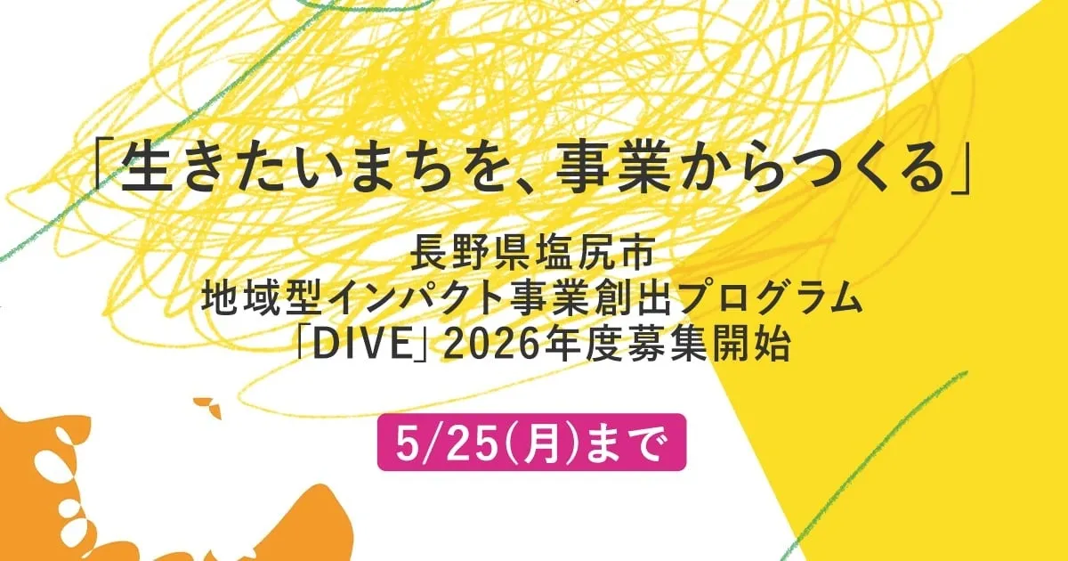 株式会社Zebras and Companyと塩尻市振興公社、M&AナレッジカンパニーGOZENが共催する地域型インパクト事業創出プログラム「DIVE」が、2026年度の参加者募集を開始しました。これにより、地域の社会起業家たちが新たな事業を創出し、持続可能な地域社会の実現を目指します。