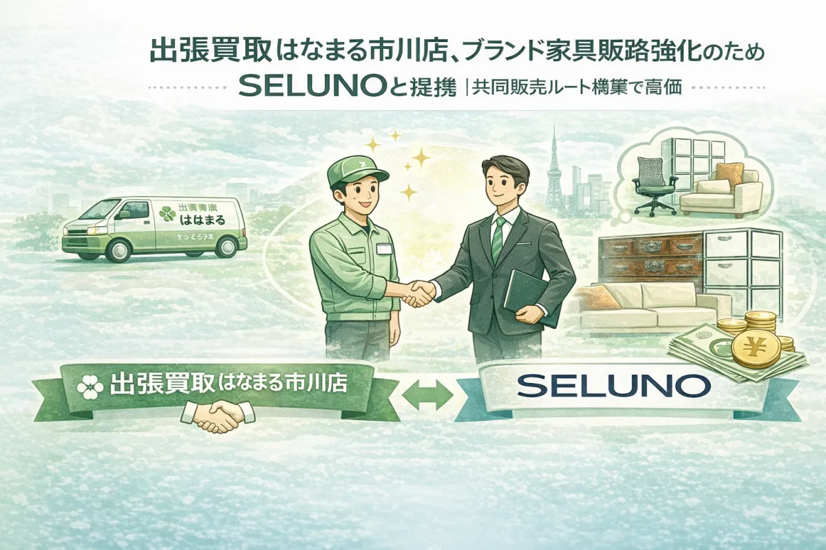 千葉県市川市に拠点を置く「出張買取はなまる 市川店」が、このたびブランド家具の買取強化を目指して、ブランド家具の専門卸・販売を行うSELUNO(セルノ)と提携することが発表されました。この共同販売ルートの構築によって、出張買取はなまる市川店は、ブランド家具の査定精度を向上させ、高価買取を実現する体制を整えることとなります。