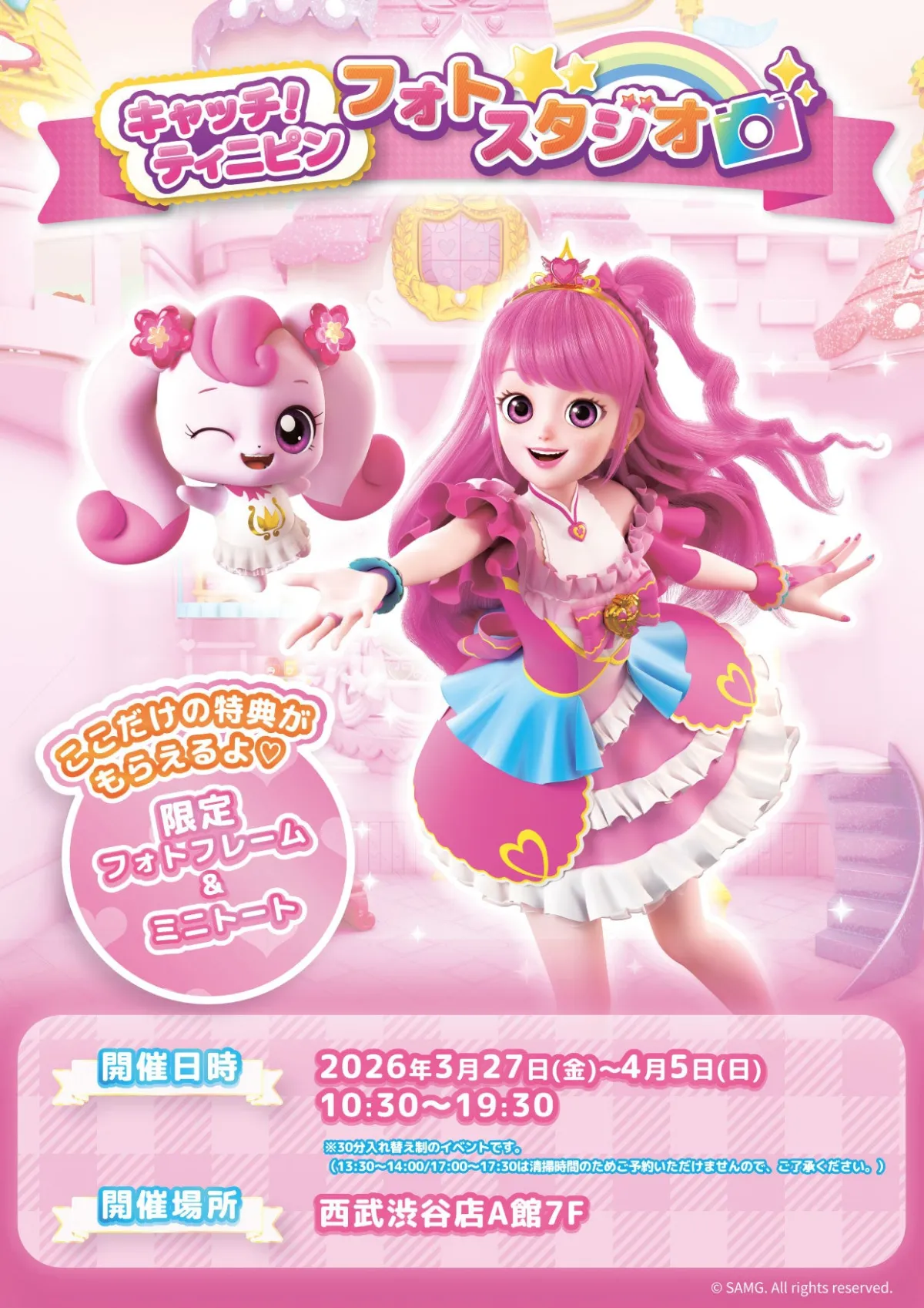 大人気アニメ「シークレット キャッチ!ティニピン」が日本初の期間限定フォトスタジオを渋谷に開設します。開催は2026年3月27日から4月5日までの期間で、場所は西武渋谷店A館の7階です。このイベントは、作品の魅力を体感できる特別な空間で、主人公のハチュピンとともに思い出の写真を撮影することができます。