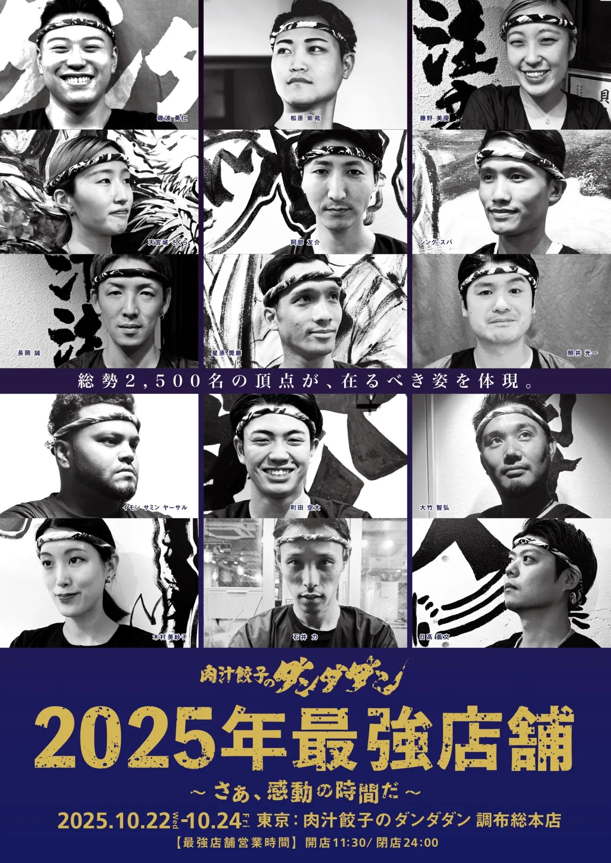 株式会社ダンダダンは、2025年10月22日(水)から24日(金)にかけて、東京都調布市にある総本店で「2025年 最強店舗営餃」を開催します。このイベントは、全国に広がる肉汁餃子のダンダダンを支えるスタッフたちの中から選ばれた精鋭たちによる特別営業です。