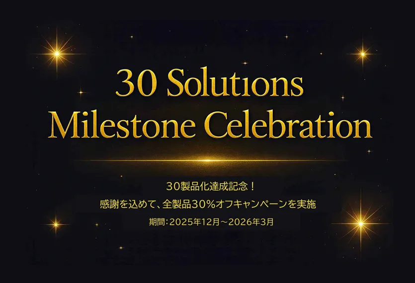 AIシステムやロボットの開発を行うタケロボ株式会社が、ついにAIソリューションの製品数を30に達成しました。ここまでの成長は、多くのお客様やパートナーの支援の賜物です。この成功を祝い、タケロボは特別キャンペーンを展開し、全製品を30%OFFで提供することを決定しました。