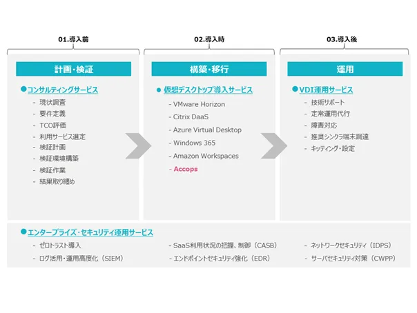 新たに追加されるAccopsシリーズは、VDI環境全体を対象とした包括的な統合ソリューションです。以下の特徴があります。