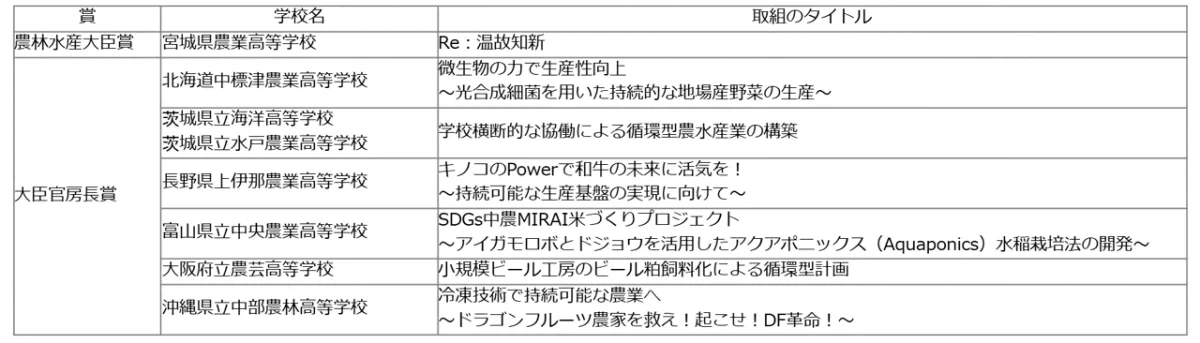 農林水産大臣賞を受賞した各チームの成果は、公式YouTubeチャンネルや各種展示イベントを通じて広く発信され、他の若者たちへの刺激となることを目指しています。また、受賞チームの活動が他の学生にも広がりを見せることで、持続可能な農業や食料システムに関する理解が深まることを期待されています。
