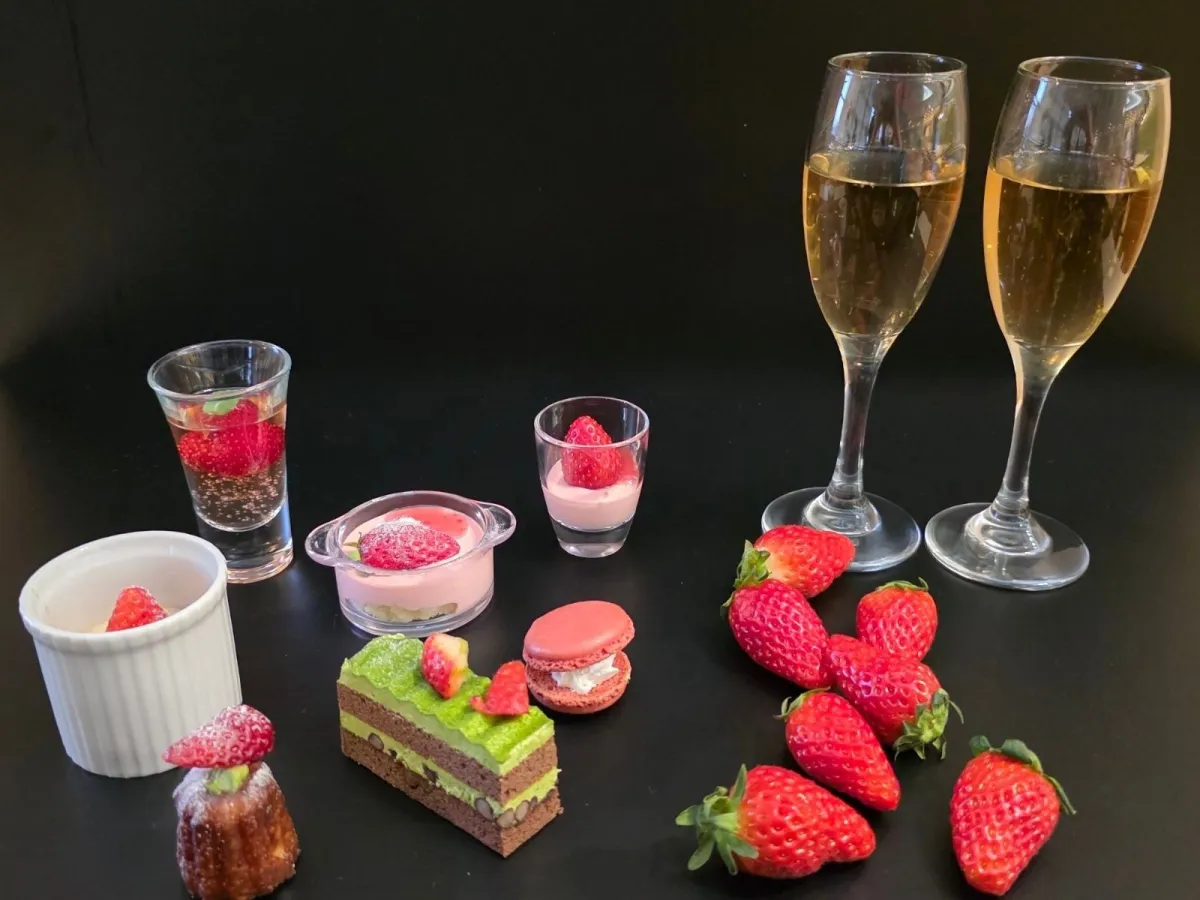 ビュッフェのメニューには、いちごのショートケーキやいちごのティラミス、さらには抹茶のテリーヌやいちごのジュレといったスイーツが並びます。そして、冷製料理としてはいちごのサンドイッチや蒸し鶏のスパニッシュオムレツ、温製料理には鶏もも肉の唐揚げや鰆のアクアパッツァなどが用意されています。これまでにないいちごづくしの体験は、特に女子会やロマンティックなデートにぴったりです。