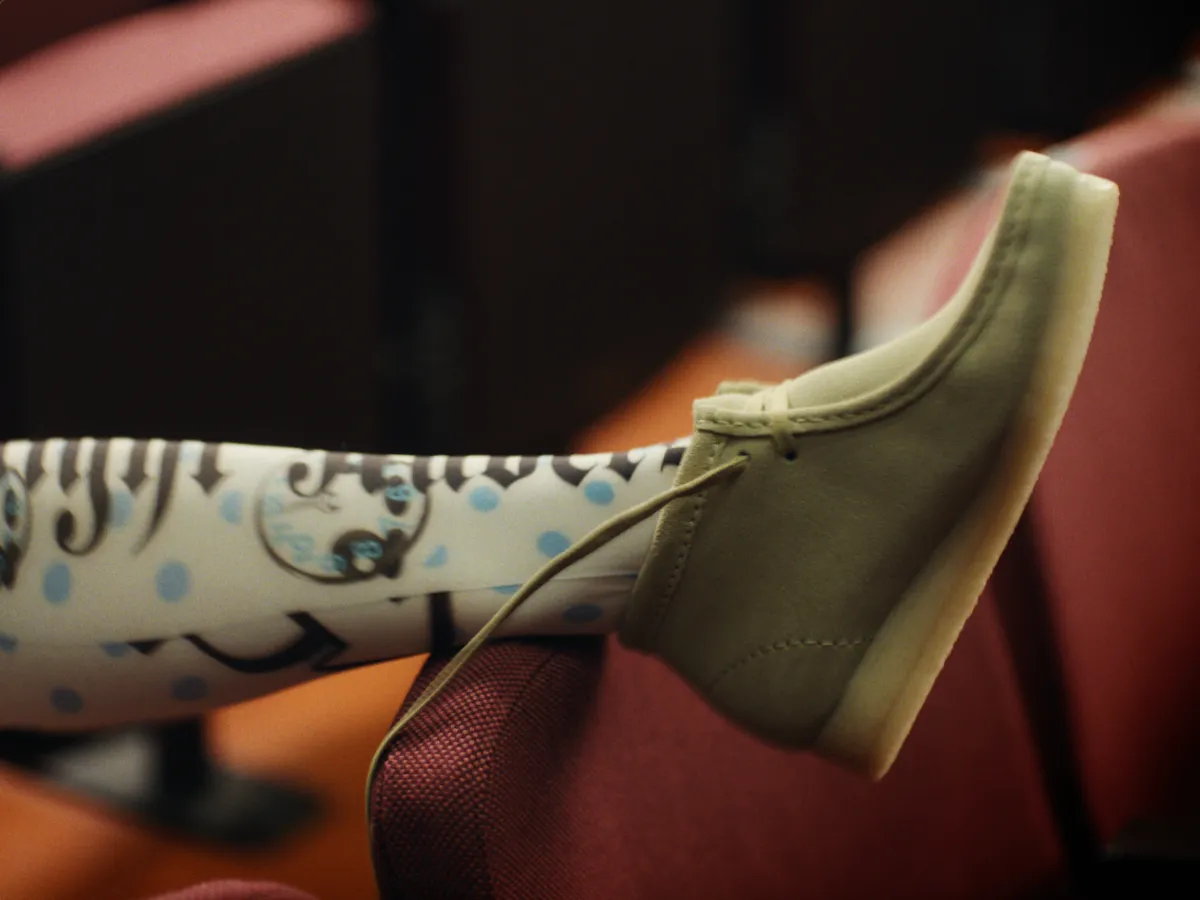 2025年のWallabee Dayで公開される「WORN BY THE WORLD」は、ワラビーの多様な解釈を描くユニークなフィルムです。舞台は“Wallabeeオーディション”。2人の審査員が見守る中、出場者たちはそれぞれの個性を活かして、自分なりの「Wallabee」を表現します。このアイデアのインスピレーションとなったのは、1971年にJFK空港での出来事。4,176足のワラビーが「動物のワラビー」と誤解されたというエピソードから、クラークスは創造性とユーモアをもってこの物語を展開しています。