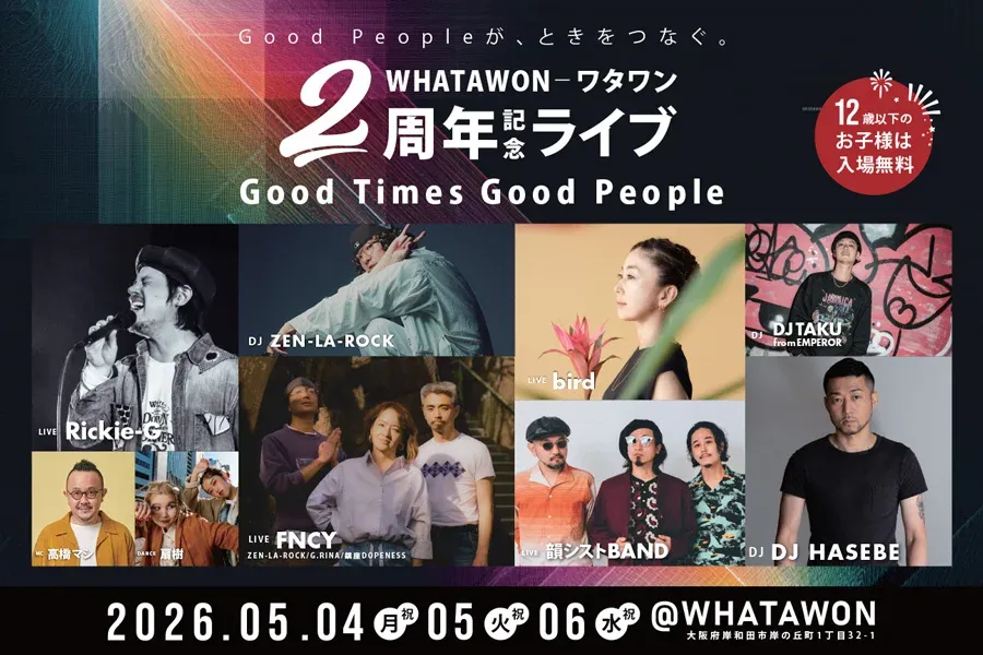 大阪・岸和田に位置するエンターテインメントモール、WHATAWON(ワタワン)が今年の開業2周年を迎え、その記念イベントとして「Good Times Good People」という名の大型フェスを開催します。この3日間にわたる特別なイベントは、例年にないスケールと内容を誇り、音楽・グルメ・ファッション・カルチャーが融合した真のエンターテインメント体験を提供します。