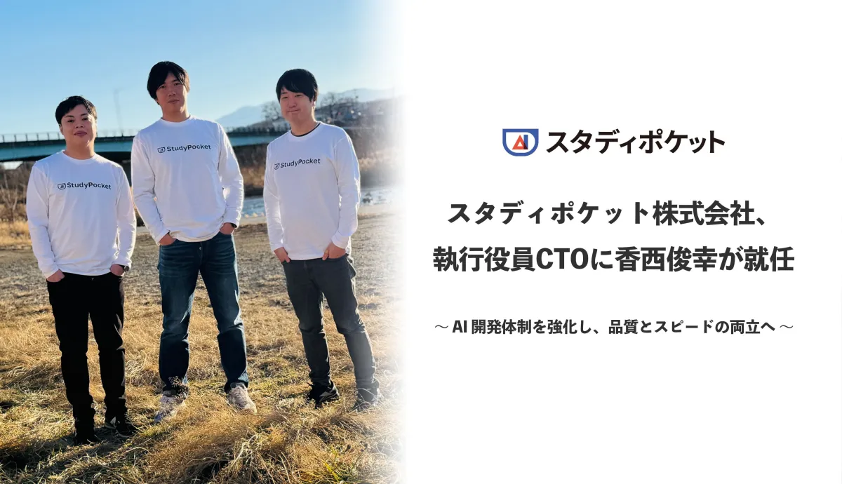 スタディポケット株式会社、新たなCTOに香西俊幸氏を任命