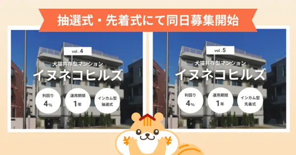 新ファンド「犬猫共存型マンション イヌネコヒルズVol.4&Vol.5」登場