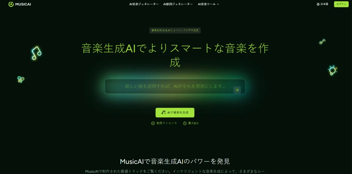 「MusicAI」は、ユニークな音楽生成機能と実用的な編集ツールを統合し、クリエイターの独自のアイデアを具現化します。