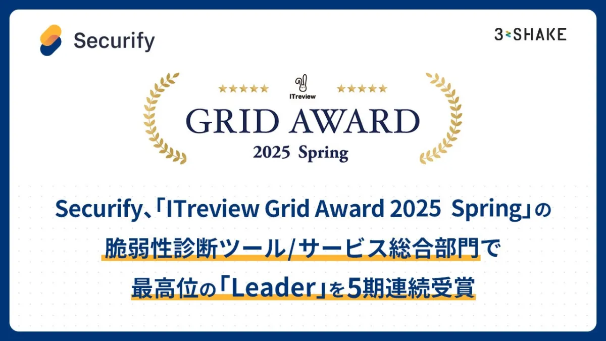 最近、株式会社スリーシェイクが提供する統合セキュリティプラットフォーム「Securify」が、IT製品レビュープラットフォーム「ITreview」において、脆弱性診断ツール/サービス総合部門で最高位の「Leader」を受賞しました。この受賞はSecurifyにとって5期連続、また中堅企業と中小企業部門でも4期連続となる快挙です。