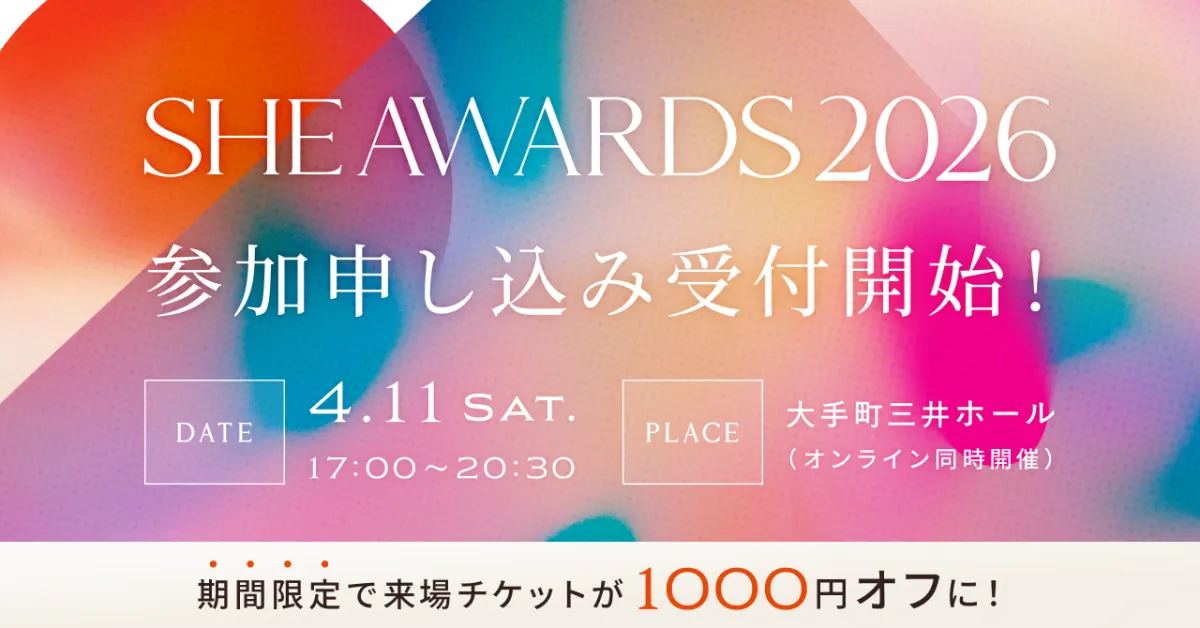 女性のキャリア支援を目指す「SHE株式会社」が主催する「SHE AWARDS 2026」が、4月11日(土)に東京都・大手町三井ホールで開催されます。このイベントは、女性が自分らしい働き方を実現するためのプラットフォームである「SHElikes」の支持を受けており、毎年開催される祭典です。