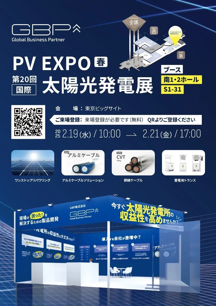 再生可能エネルギー業界において注目を集めているGBP株式会社が、2025年2月19日(水)から21日(金)までの3日間、東京ビッグサイトにて開催される「PV EXPO【春】第20回 [国際] 太陽光発電展」に出展します。このイベントは、太陽光発電の最新技術や製品が一堂に会する貴重な機会であり、特にエネルギー効率化やリパワリング技術に焦点を当てた内容が期待されています。