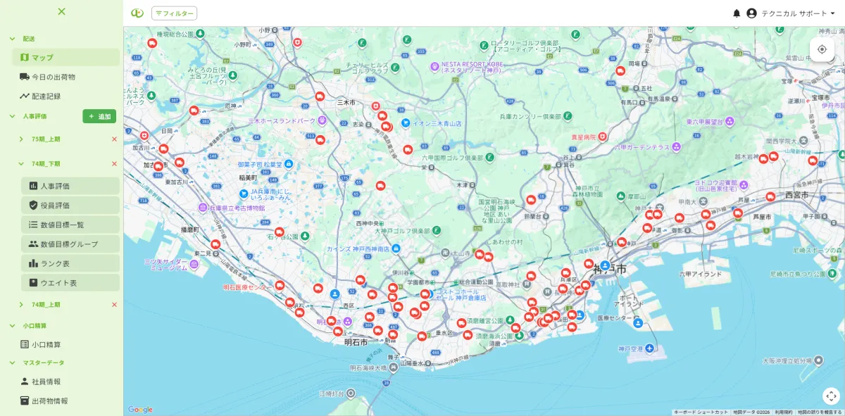 - - 配送員の位置情報をリアルタイムで地図上に表示:これにより、各配送員の現在の位置を把握でき、迅速な意思決定が可能になります。