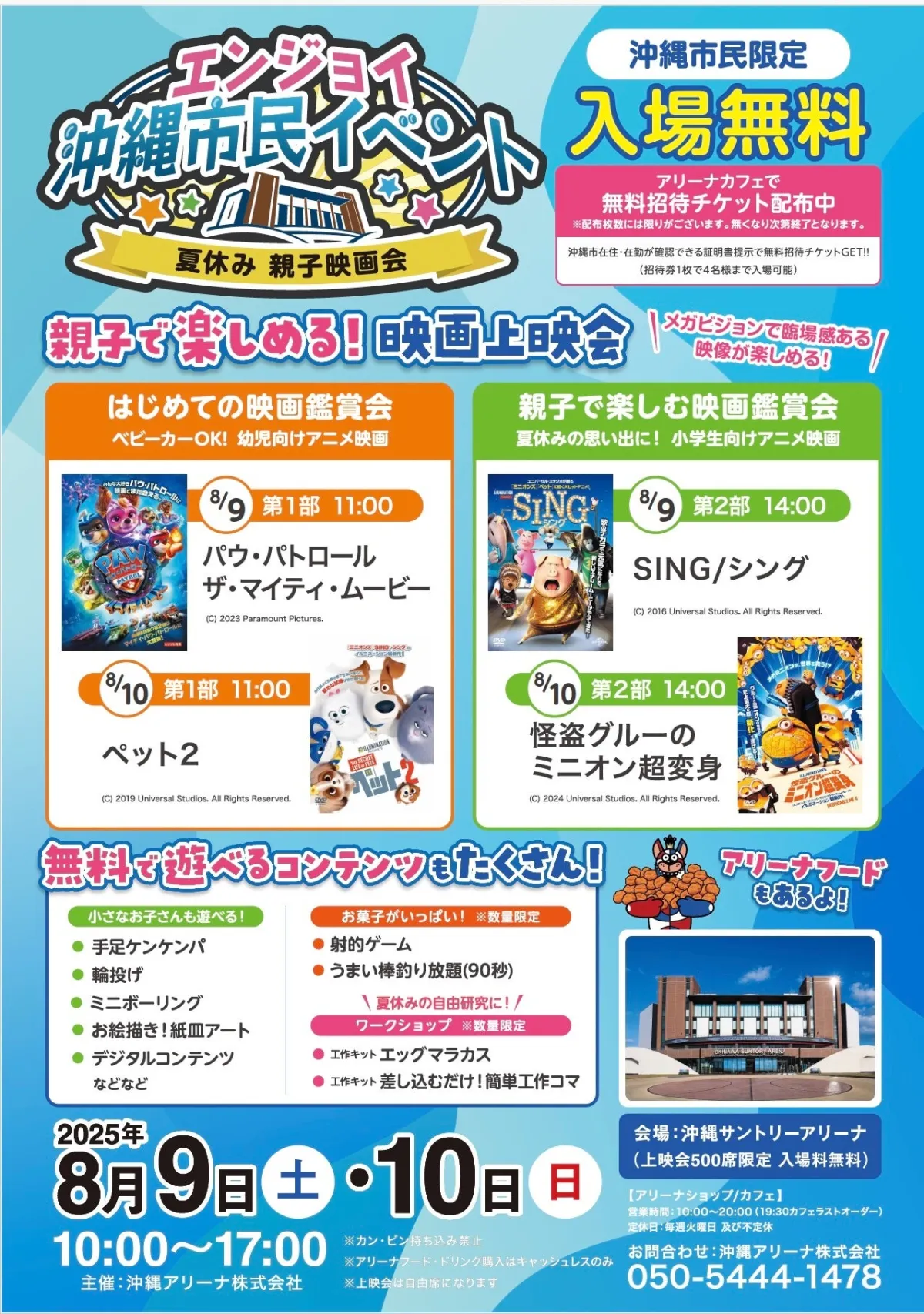 2025年8月9日(土)から10日(日)の2日間、沖縄サントリーアリーナで「エンジョイ沖縄市民イベント~夏休み 親子映画会~」が開催される。このイベントは、親子が楽しめる映画上映や体験型コンテンツを通じて、家族の絆を深める絶好の機会となる。