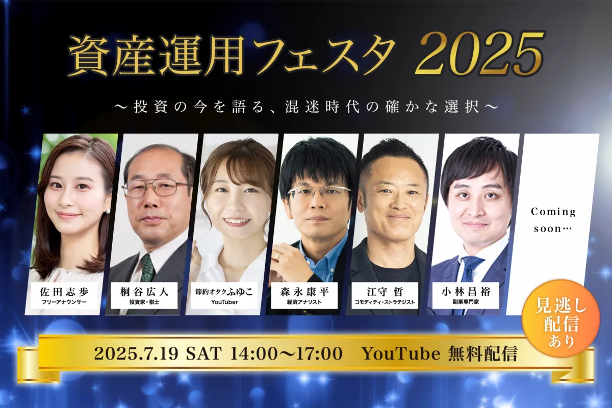 2025年7月19日(土)に開催される「資産運用フェスタ2025」は、投資の新常識を学べるオンラインイベントです。著名な投資家や専門家が集まり、新NISA、株式投資、金投資、不動産投資など多方面からのテーマで語ります。このイベントは初心者から経験者まで、それぞれのニーズに応じた実践的な内容が盛りだくさんです。