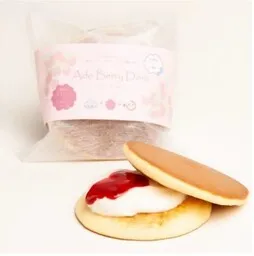 地元安曇川町の特産「アドベリー」を使用した、甘酸っぱいソースと生クリームを重ねた新感覚洋風どら焼き。お菓子屋さん「とも栄菓舗」との共同開発で、色鮮やかで美しい見た目が魅力です。