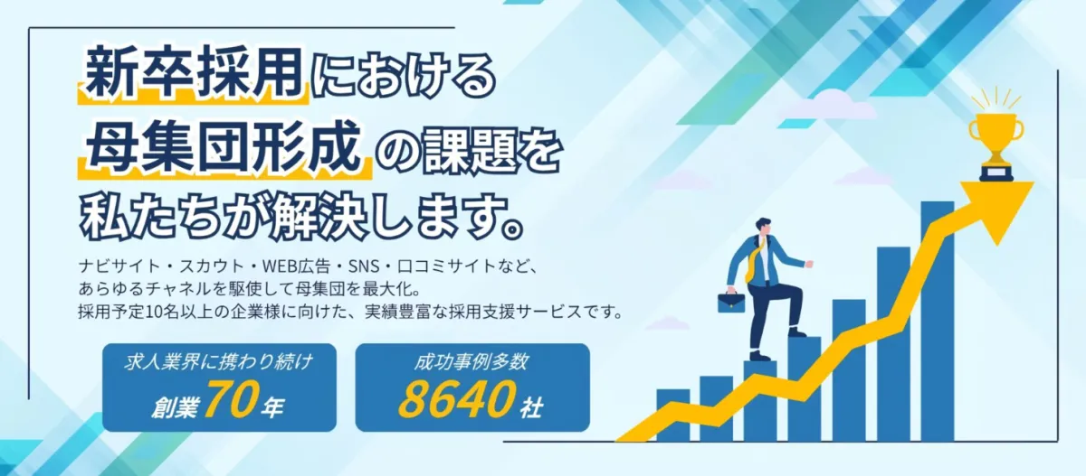 株式会社アクシアエージェンシーは1954年に創業し、求人広告代理業を展開してきました。年間8,640社を支援経験があり、最新のテクノロジーを駆使して採用活動をサポートしております。これまでの実績を元に、企業の新卒採用を支援する新しい体制を整えつつ、小規模企業や地方における採用活動にも対応しています。