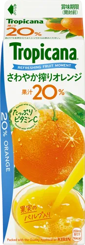 「トロピカーナ さわやか搾りオレンジ」は、オレンジ果汁の甘味と酸味の絶妙なバランスを追求し、果汁20%というしっかりとした味わいを実現しています。特に、オレンジの繊維分であるパルプを使用することで、満足感のある果実感を生み出しました。飲みやすさを重視しながらも、果実のおいしさを感じられる新しい飲み物となっています。また、この飲料には体に嬉しいビタミンCが配合されており、日常の中で健康に気を使う方にもぴったりです。