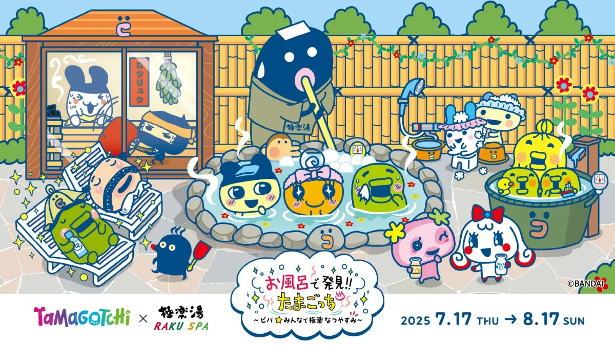 2025年7月17日から、極楽湯と「たまごっち」のコラボキャンペーン「お風呂で発見!!たまごっち~ビバ★みんなで極楽なつやすみ~」がスタートします。