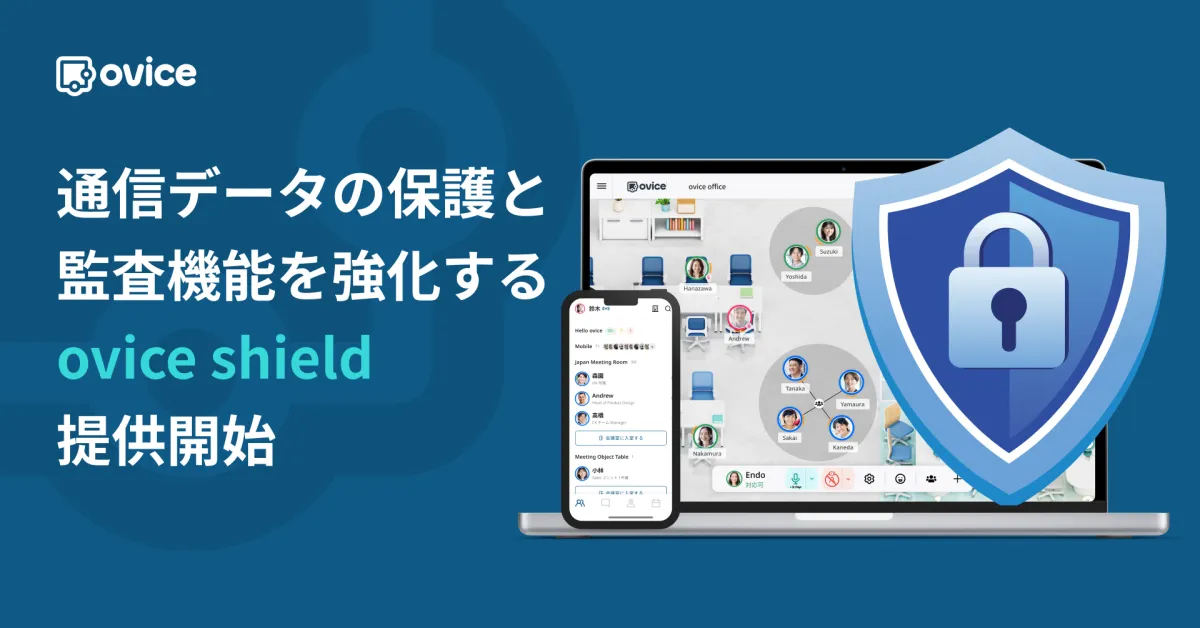 最近、企業や教育機関においては、個人情報や知的財産などの重要なデータを扱う機会が増えています。そのため、通信の暗号化やアクセス履歴の管理が急務となっています。oviceの活用が広まり、より安全で安心な利用環境を求める声が高まったため、oViceは通信の暗号化と監査機能を強化した「ovice shield」を開発しました。