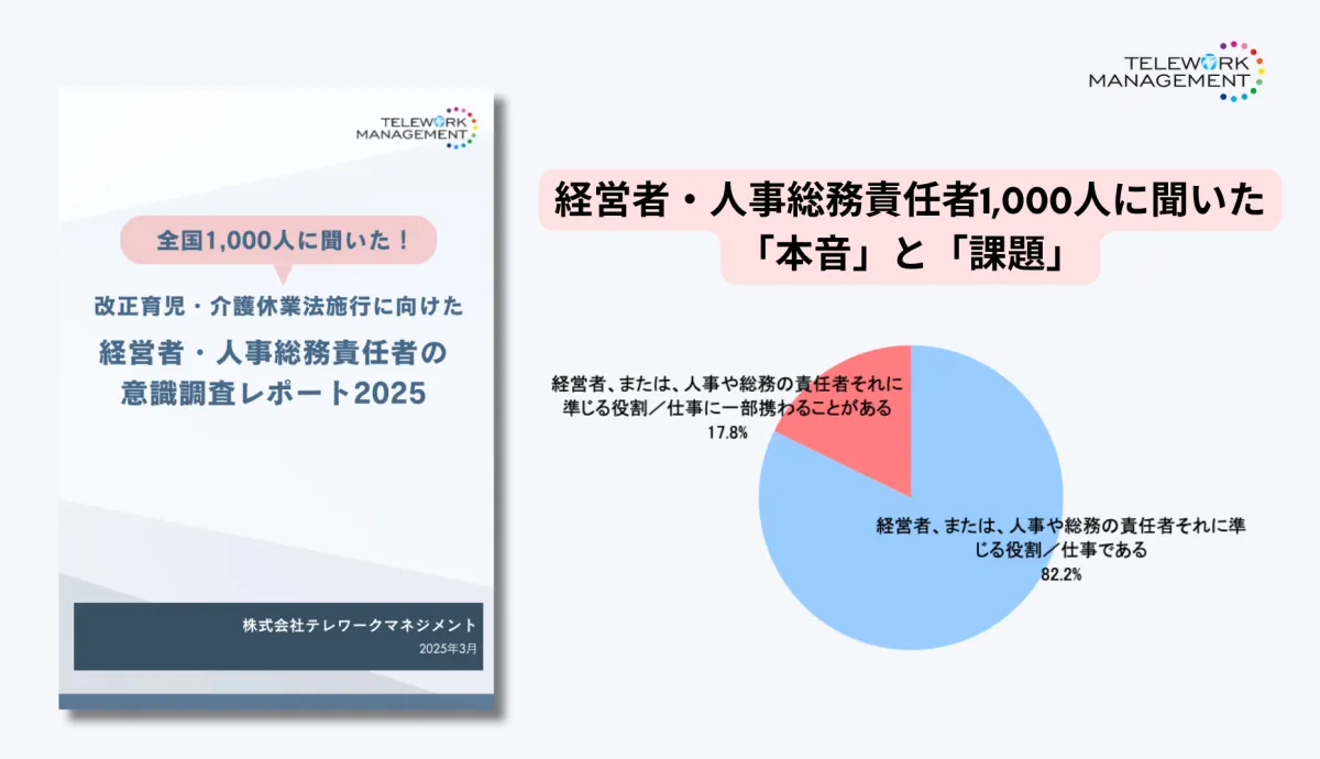 これを受け、株式会社テレワークマネジメントは、全国の経営者や人事・総務責任者1,000名を対象に緊急調査を実施。その結果をレポートとして発表しました。この調査は、法改正に対する企業の意識や準備状況、そして現在の課題を探るためのものでした。