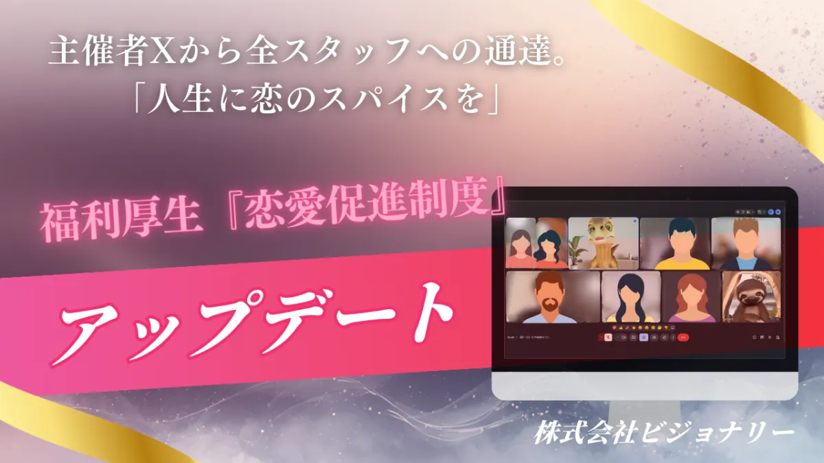 愛知県名古屋市に本社を置く株式会社ビジョナリーは、働く世代の人々に向けた新しい福利厚生「恋愛促進制度」を刷新し、初のウェブ合コンを開催しました。この取り組みは、人生をもっと豊かにするための一環として、社員同士の交流を促進し、恋愛を通じて生活の質を向上させることを目的としています。