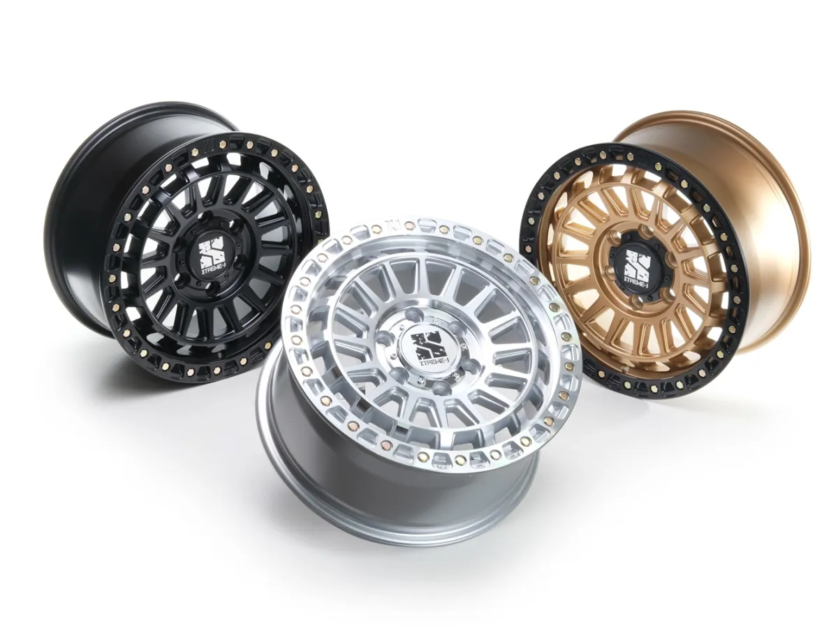 XJ08の最大の特徴は、伝統のビードロックデザインをさらに進化させた点です。リング部分の強度を確保しつつ、実際に貫通させたデザインがリアリティを引き出しています。このホイールは見せかけだけではない、本物のタフさを体現しています。また、機能性も兼ね備え、砂利や水を排出する仕様になっているため、オフロード走行でも安心して使用できます。