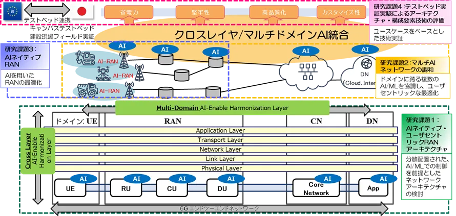 このプロジェクトは、国立研究開発法人情報通信研究機構が公募した「革新的情報通信技術(Beyond 5G)」基金事業に基づき、日EUの国際共同研究として位置づけられています。具体的な目的は、AI技術を活用してユーザにとって最適な通信体験を実現することです。