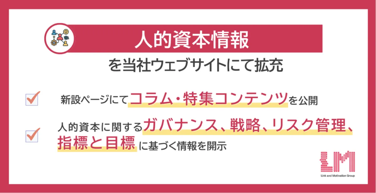 株式会社リンクアンドモチベーション(本社:東京都中央区、代表:小笹芳央、証券コード:2170)は、人的資本に関する情報をウェブサイトでさらに充実させたことを報告しました。この取り組みは、企業の持続可能性に対する社会的関心の高まりと、投資家やステークホルダーにとって重要な意思決定要因である人的資本の開示を目的としています。