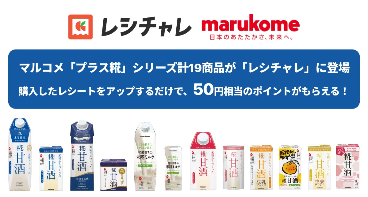 新たに「レシチャレ」で展開されるマルコメの「プラス糀」シリーズは、季節の変わり目にぴったりな飲む点滴と健康的なライフを支えるアイテムです。このキャンペーンは2026年2月18日(水)から3月31日(火)までの期間で、マルコメ株式会社の計19商品が対象になっています。この商品群には、「プラス糀 糀甘酒」シリーズや新しい「プラス糀 米糀ミルク」が含まれています。購入した商品を「レシチャレ」のアプリにてレシートをアップロードすると、50円相当のポイントが還元されます。これはお得感満載です!