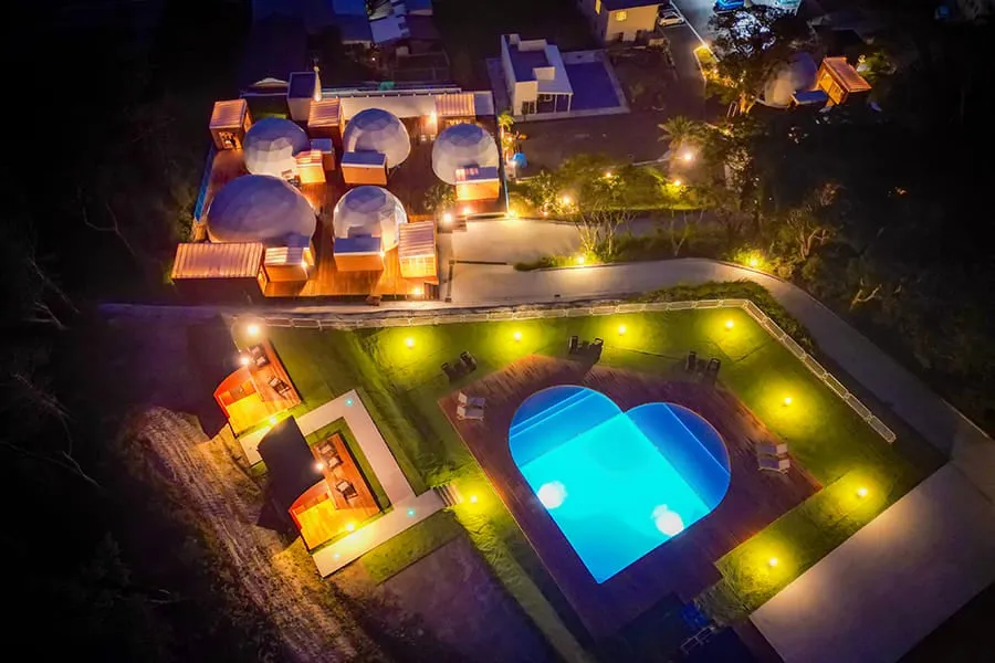 グランドーム下関をご紹介。山口県下関市にあるこのグランピング施設は、関門海峡を望む素晴らしいロケーションです。プライベートプール付きの部屋もあり、BBQグリルの利用が無料になるなどの特典が魅力です。特典が盛りだくさんなこのプランをぜひ活用してください。