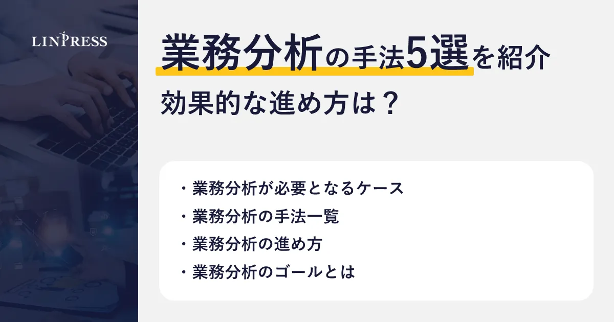 業務分析の最終的な目的は、業務の効率化だけでなく、企業全体の成長を促すことであり、持続可能な経営を実現するための基盤を作ることです。業務改善や原因分析は、リンプレスにお任せください。この記事が、DX推進に向けてのヒントとなることを願っています。