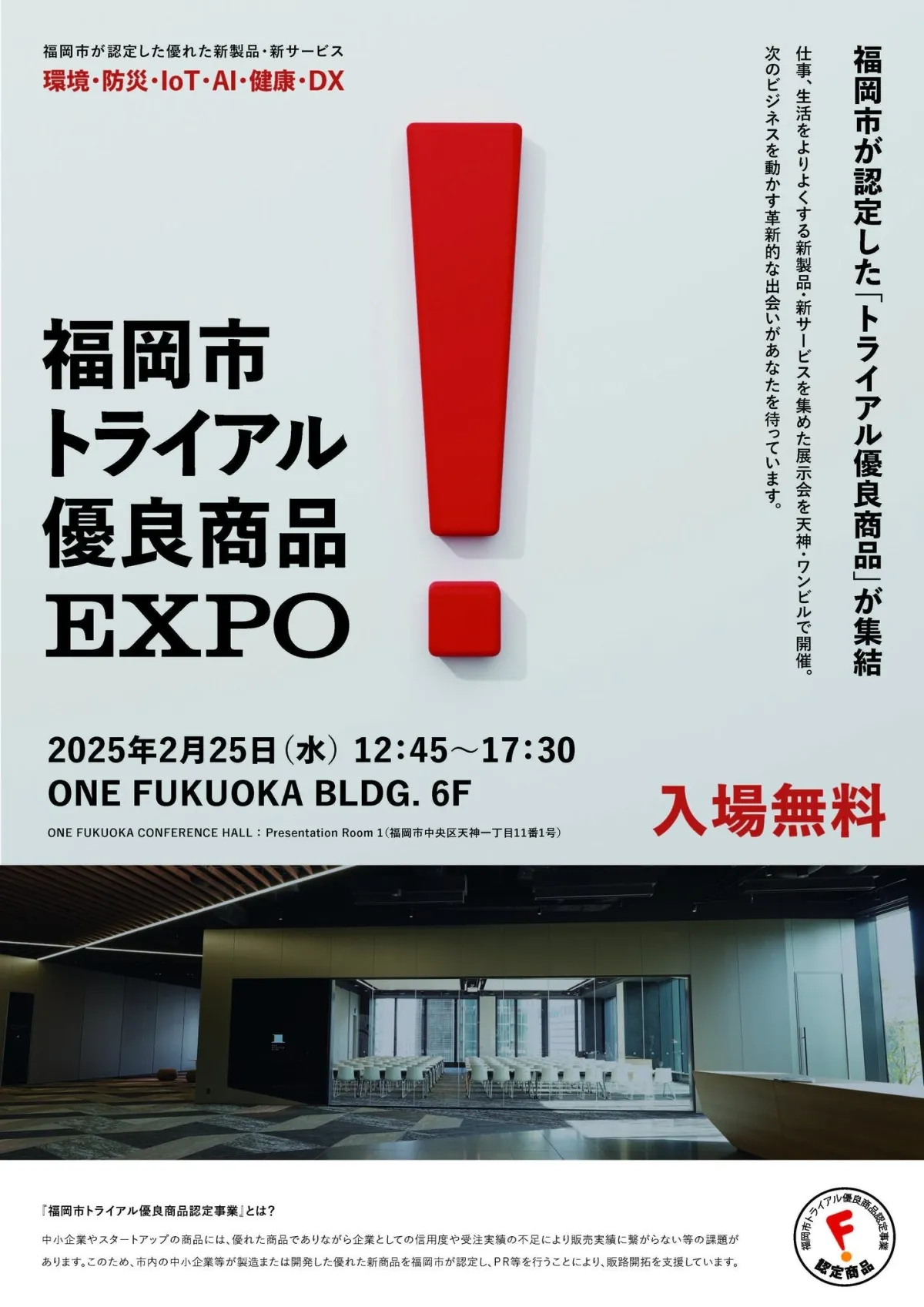福岡市は、地域内の中小企業が開発した新たな優れた商品を広く紹介するため、2024年2月25日に「福岡市トライアル優良商品EXPO」を東京・天神の『ONEFUKUOKABLDG.』で開催します。このイベントでは、過去3年間(令和5年度〜令和7年度)に認定されたトライアル優良商品が中心に展示され、地元企業の独自性に触れる良いチャンスです。