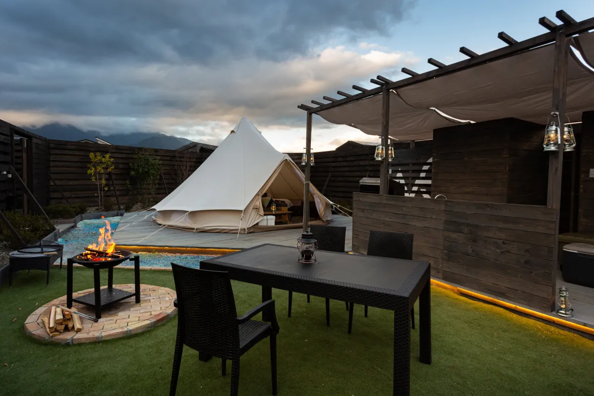 The Villa Glamping 河口湖は、絶好のロケーションを誇り、富士山を一望できる環境にありながら、訪れる方々に完全なプライバシーを提供します。各棟は100平米以上の広さを持ち、専用の露天風呂と焚き火スペースが完備されています。一部の棟には、プライベートサウナも設置されており、都会の喧騒から離れて心身のケアをすることができます。