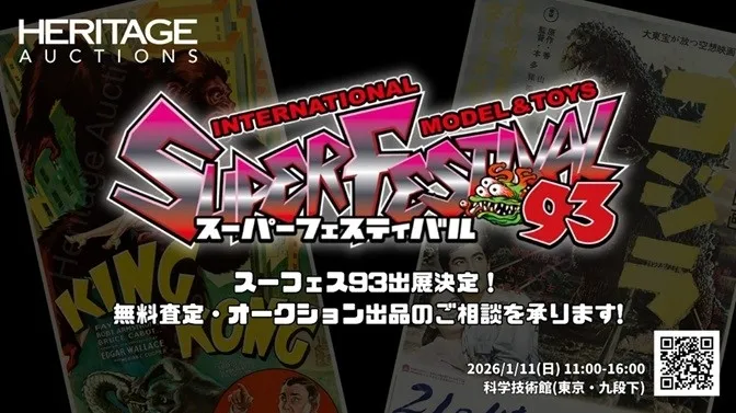 2026年1月11日(日)、東京都千代田区の科学技術館で開催される「スーパーフェスティバル93」にて、世界最大のオークション会社「ヘリテージ・オークションズ」が出展します。このイベントでは、古今東西の玩具やコレクターズアイテムが集まり、特にポップカルチャーに関連したアイテムに焦点を当てた無料査定会が行われる予定です。
