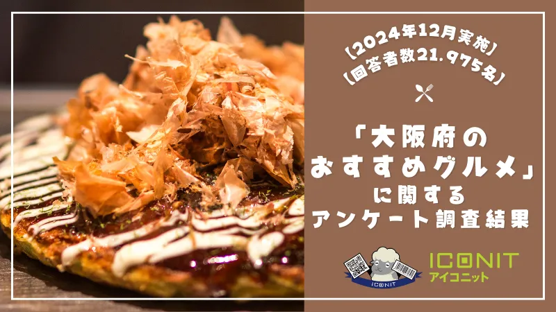 株式会社メディアシークが運営する「QR/バーコードリーダー・アイコニット」内のリサーチ機能を利用して、21,975名の回答者に「大阪府のおすすめグルメ」に関する質問を実施。全体の89%が大阪出身でないという中で、地元民と観光客の両方が選んだ美味しい料理がどのようなものか見てみましょう。