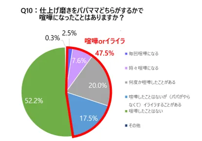 仕上げ磨きの担当者は、約64%が「ママ」と答えています。特に、半数のママが担当分担の問題から喧嘩やイライラを経験したという結果も出ており、パートナー間での協力が必須です。