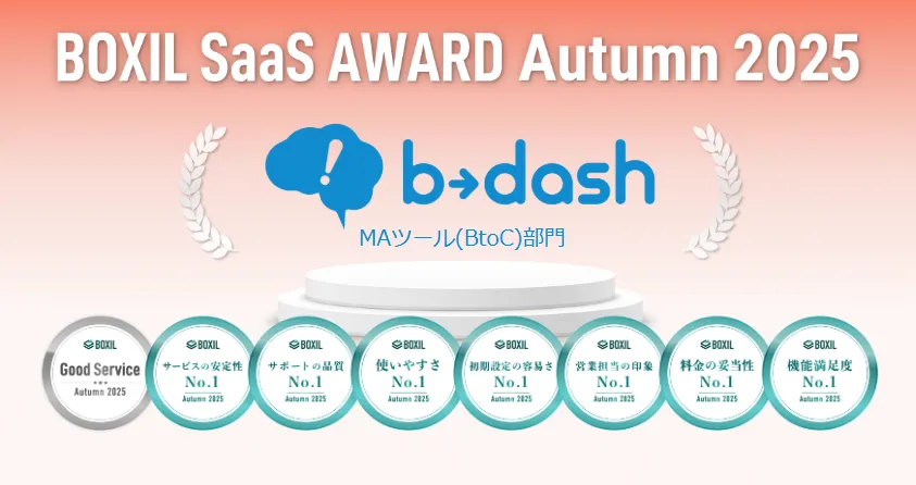 株式会社データXが提供するデータマーケティングクラウド『b→dash』は、スマートキャンプ株式会社が主催した「BOXIL SaaS AWARD Autumn 2025」において、MAツール(BtoC)部門で合計8つの賞を受賞しました。特に注目すべきは「Good Service」や「サポートの品質No.1」など、顧客からの信頼を示す評価が多数並ぶことです。