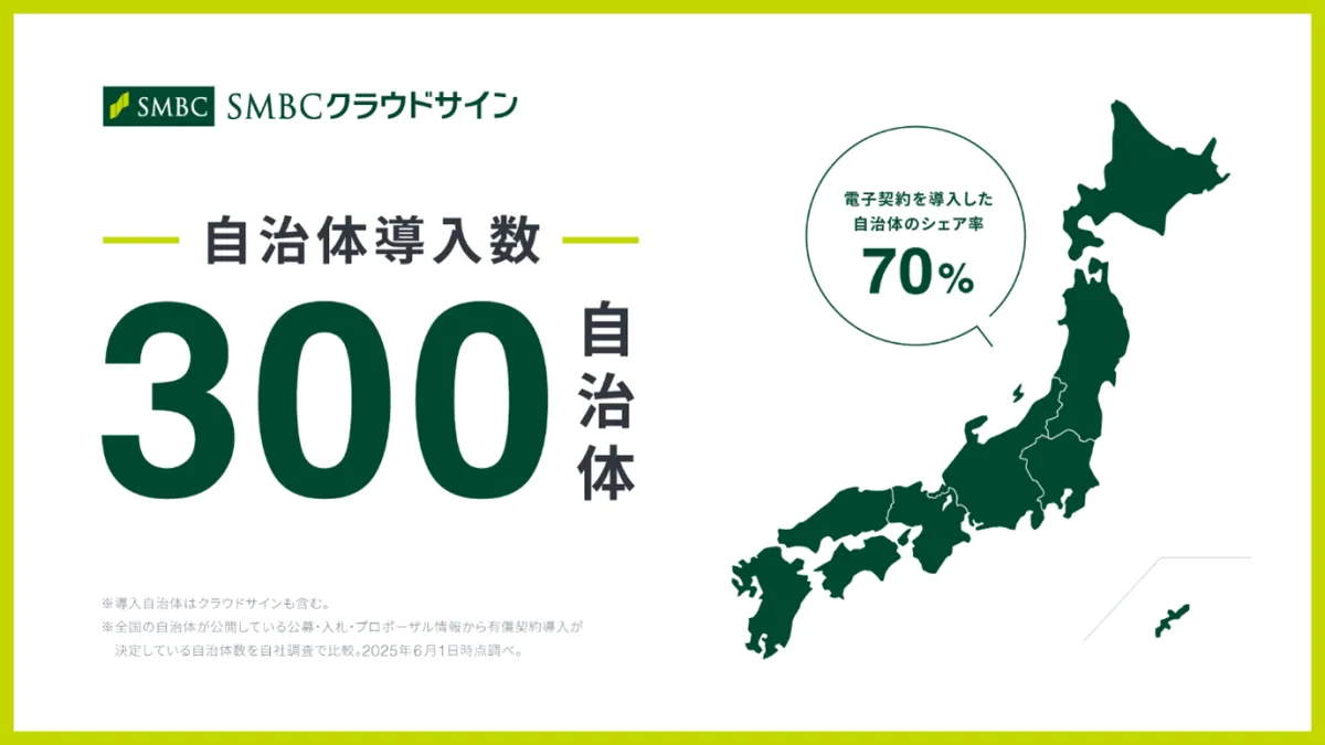 SMBCクラウドサイン株式会社が提供する電子契約サービス「SMBCクラウドサイン」と弁護士ドットコムが提供する「クラウドサイン®︎」が、2025年6月までの導入自治体数が300を超えたことを発表しました。この数字は、地方自治体が電子契約を採用する動きが加速していることを示しています。