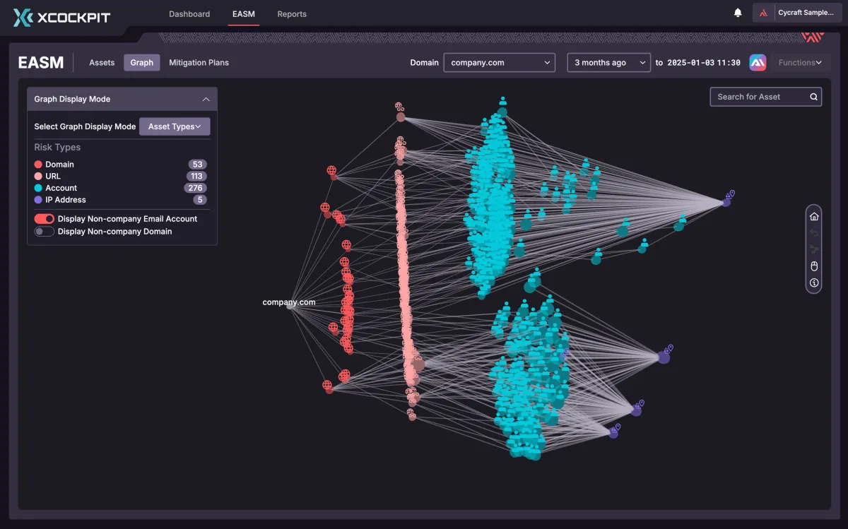 XCockpit EASMは、サイバー脅威を監視し、リスクを管理するために設計されています。このプラットフォームの強みは、外部攻撃面を自動的に検知し、整理・分析する機能です。攻撃者視点に立って企業のデジタル資産を洗い出し、サプライヤーに関連するリスクも把握可能となっています。以下に主な特徴を挙げます: