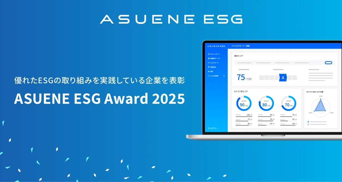 アスエネ株式会社は、環境・社会・ガバナンス(ESG)の優れた取り組みを実践している企業を表彰する「ASUENE ESG Award 2025」の受賞企業を発表しました。これは自社のESG評価を活用する企業の中から選ばれ、今年で2回目の開催となります。