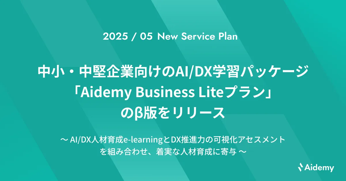 2025年5月26日、株式会社アイデミーが「Aidemy Business Liteプラン」のβ版をリリースしました。この新しい学習パッケージは、特に中小・中堅企業に向けたAI/DX人材育成を目的としています。このプランは、AIやデジタルトランスフォーメーションに必要なスキルを手軽に学べるe-learningと、スキルの可視化を図るアセスメントテストをセットにしたものです。