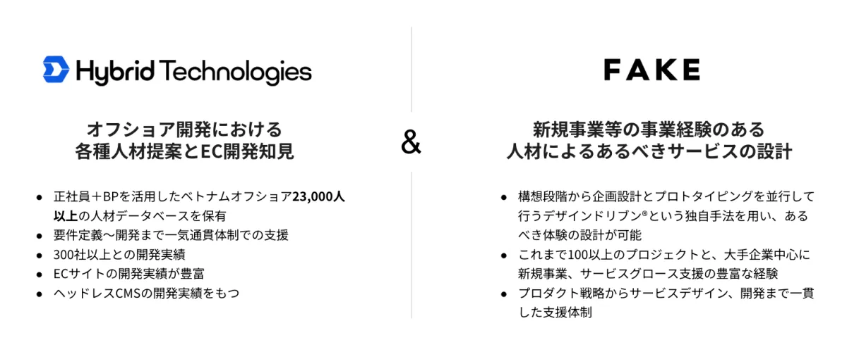 株式会社ハイブリッドテクノロジーズは、デザインドリブン®の手法で事業やDXを加速させる株式会社FAKEと業務提携を結んだことを発表しました。この提携により、両社は共同提案体制を確立し、顧客へのサービス提供を強化する予定です。