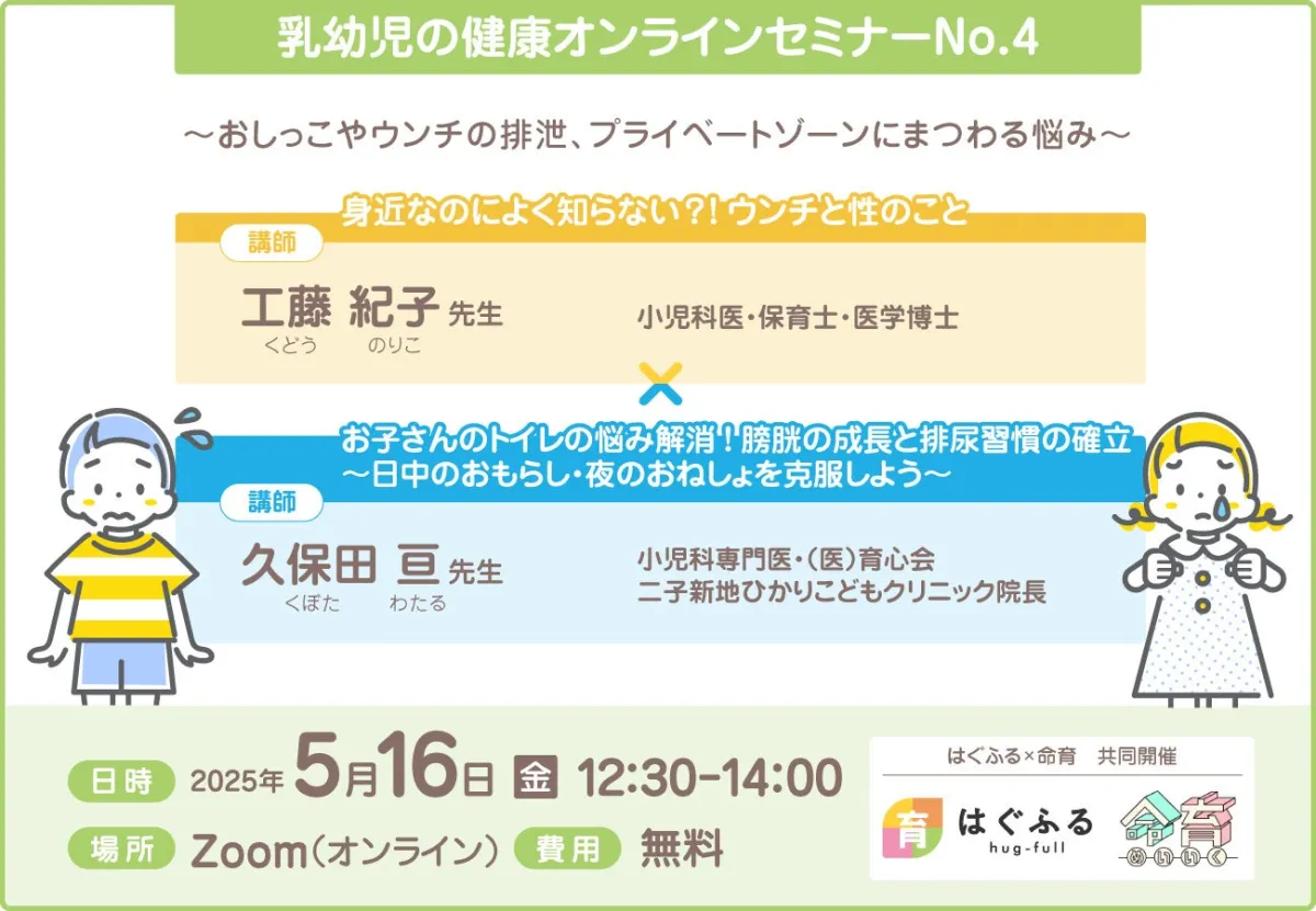 - - 内容: うんちの排出メカニズムや、トイレトレーニングにおける便秘の注意点、うんちしやすい環境づくりについてお話しします。このセッションでは、育児における基本的な知識を得られ、不安を少しでも軽減できる内容となっています。