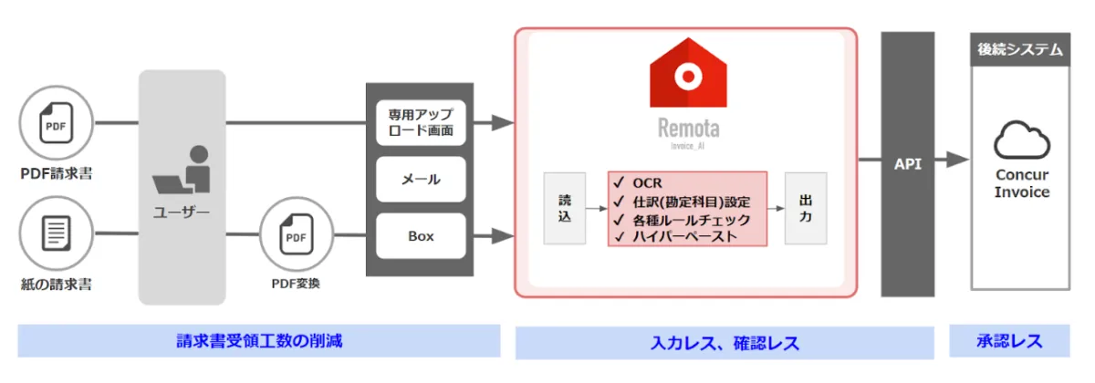 今回の導入は、Remotaとデジタルインボイス管理ソリューション「Concur Invoice」の連携を通じて行われました。従来の経理業務の煩雑さを軽減するため、現場や経理部門の業務負担を大幅に削減し、より効率的な業務プロセスを確立することを目指しています。