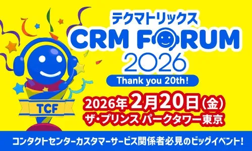 2026年2月20日、東京のザ・プリンスパークタワーで開催される「テクマトリックス CRM FORUM 2026」。このイベントでは、株式会社アドバンスト・メディアが最新の技術を駆使した音声認識と生成AIの活用事例を紹介します。参加費は無料で、事前に申し込みが必要です。